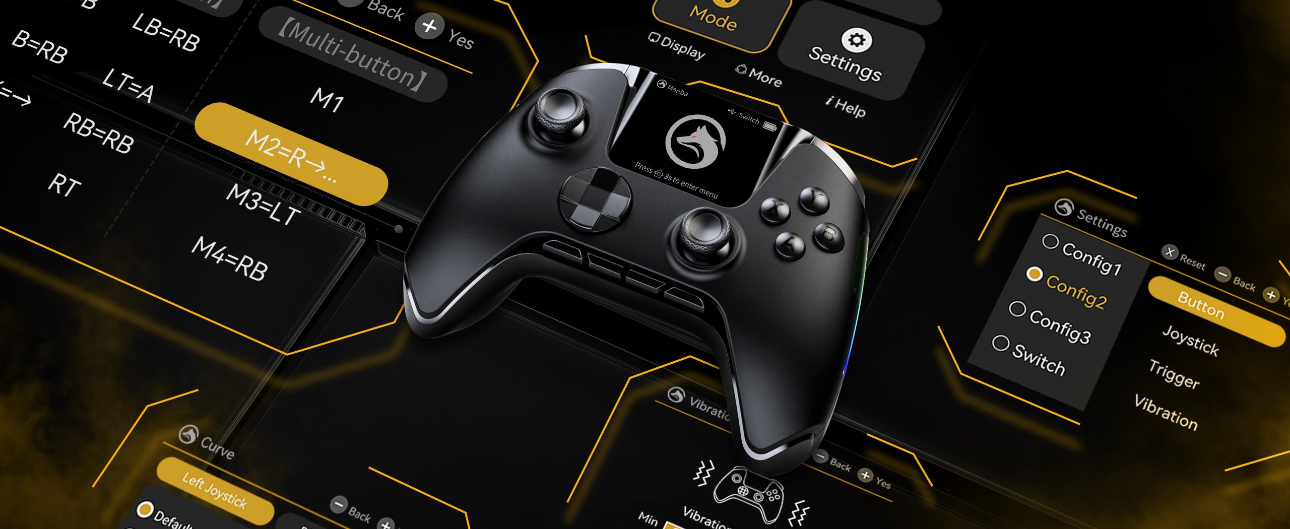 [Customize your Own Controller] The visual interaction screen can be set to vibrate, buttons, joysticks and lights. The 4 back keys support macro definition settings, and you can activate the set character's ultimate move with one click. 3 configurations can be saved to unlock your own gameplay for different games.
